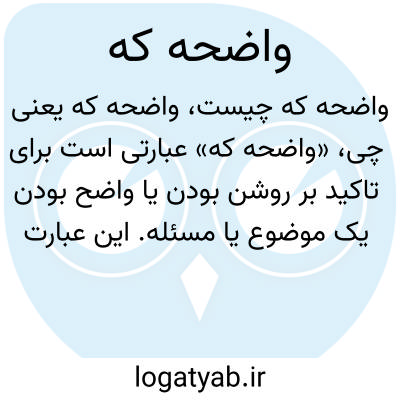 «واضحه که» عبارتی است برای تاکید بر روشن بودن یا واضح بودن یک موضوع یا مسئله. این عبارت معمولاً در مکالمات غیررسمی یا نوشتار محاورهای به معنی «واضح است که» یا «بدیهی است که» استفاده میشود.