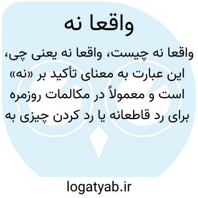 این عبارت به معنای تأکید بر «نه» است و معمولاً در مکالمات روزمره برای رد قاطعانه یا رد کردن چیزی به کار می‌رود. مثلاً وقتی کسی پیشنهادی می‌دهد و طرف مقابل می‌خواهد رد کند با «واقعا نه» مخالفت خود را نشان می‌دهد.