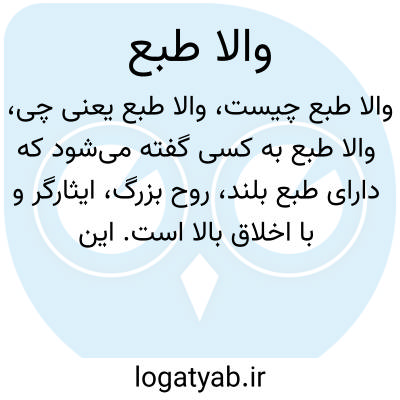 والا طبع به کسی گفته می‌شود که دارای طبع بلند، روح بزرگ، ایثارگر و با اخلاق بالا است. این واژه برای توصیف افرادی که از نظر روحی بزرگ‌منش و بلندنظرند به کار می‌رود.