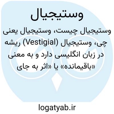 وستیجیال (Vestigial) ریشه در زبان انگلیسی دارد و به معنی «باقیمانده» یا «اثر به جای مانده» است. معمولا در زیست‌شناسی به اعضای باقیمانده از گذشتگان اشاره دارد که دیگر عملکرد اصلی خود را ندارند. این واژه در فارسی به صورت علمی وارد شده و به معنای باقی‌مانده یا آثار گذشته است.