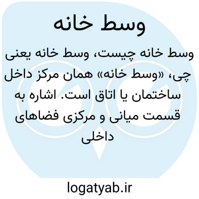 «وسط خانه» همان مرکز داخل ساختمان یا اتاق است. اشاره به قسمت میانی و مرکزی فضاهای داخلی خانه دارد که معمولاً به عنوان جایگاهی برای قرار گرفتن اشیاء یا فعالیت‌های مختلف مورد استفاده قرار می‌گیرد.