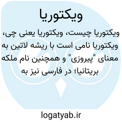 ویکتوریا نامی است با ریشه لاتین به معنای "پیروزی" و همچنین نام ملکه بریتانیا؛ در فارسی نیز به همین صورت به کار می‌رود و به معنی "پیروزی" است.