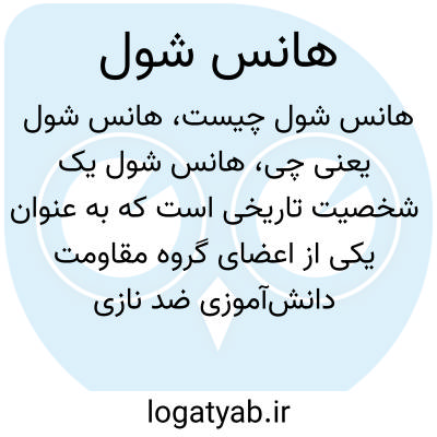 هانس شول یک شخصیت تاریخی است که به عنوان یکی از اعضای گروه مقاومت دانش‌آموزی ضد نازی به نام گروه "رز سفید" در آلمان نازی شهرت دارد. او همراه با خواهرش سوزانه شول علیه رژیم نازی فعالیت می‌کرد و به همین دلیل توسط حکومت نازی به دار آویخته شد. شخصیت وی نماد مقاومت شجاعانه و مبارزه با ظلم است.