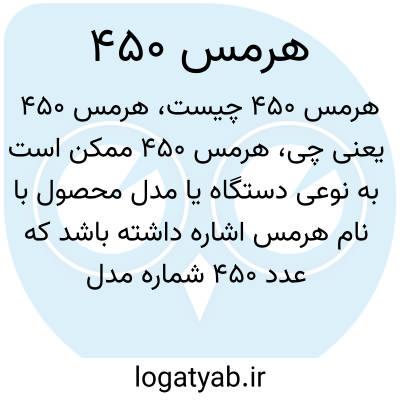هرمس ۴۵۰ ممکن است به نوعی دستگاه یا مدل محصول با نام هرمس اشاره داشته باشد که عدد ۴۵۰ شماره مدل یا شماره خاص آن باشد، ولی بدون زمینه بیشتر قابل تشخیص نیست.