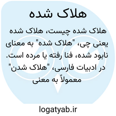 "هلاک شده" به معنای نابود شده، فنا رفته یا مرده است. در ادبیات فارسی، "هلاک شدن" معمولاً به معنی مردن یا نابود شدن کامل به کار می‌رود و ممکن است اشاره به مرگ طبیعی یا نابودی وسیع داشته باشد.