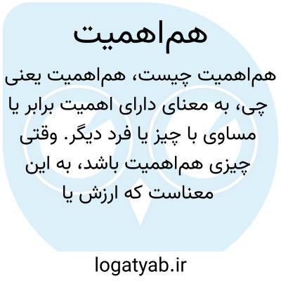 به معنای دارای اهمیت برابر یا مساوی با چیز یا فرد دیگر. وقتی چیزی هم‌اهمیت باشد، به این معناست که ارزش یا جایگاه مشابهی دارد.