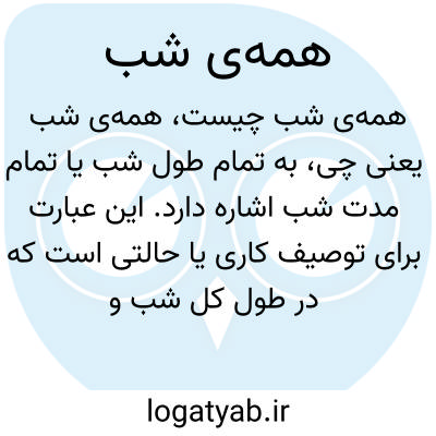 به تمام طول شب یا تمام مدت شب اشاره دارد. این عبارت برای توصیف کاری یا حالتی است که در طول کل شب و بدون وقفه ادامه داشته باشد، مثل بیداری یا فعالیت.