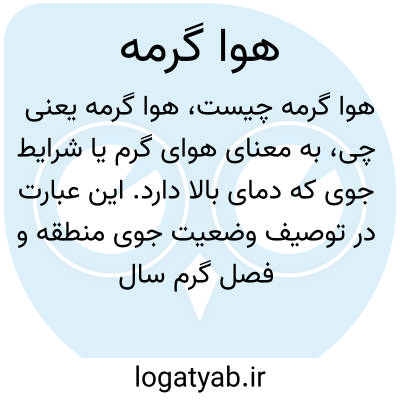 به معنای هوای گرم یا شرایط جوی که دمای بالا دارد. این عبارت در توصیف وضعیت جوی منطقه و فصل گرم سال به کار میرود.
