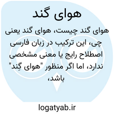 این ترکیب در زبان فارسی اصطلاح رایج یا معنی مشخصی ندارد، اما اگر منظور "هوای گِند" باشد، ممکن است به هوایی که بو یا کیفیت نامطبوع و ناسالم دارد اشاره داشته باشد، مثل هوای آلوده یا کثیف که باعث عدم رضایت و ناراحتی میشود.