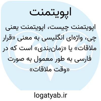 واژه‌ای انگلیسی به معنی «قرار ملاقات» یا «زمان‌بندی» است که در فارسی به طور معمول به صورت «وقت ملاقات» یا «تعیین وقت» ترجمه می‌شود. اپویتمنت زمانی است که فرد با دیگری برای دیدار یا انجام کاری توافق می‌کند.