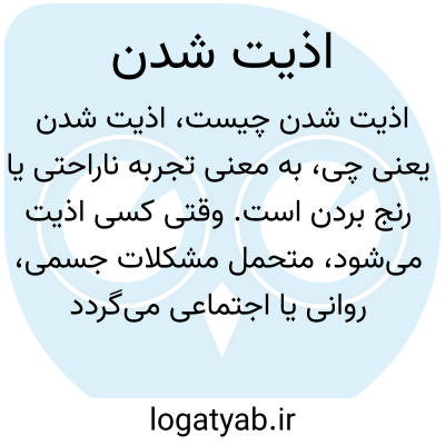 به معنی تجربه ناراحتی یا رنج بردن است. وقتی کسی اذیت می‌شود، متحمل مشکلات جسمی، روانی یا اجتماعی می‌گردد که باعث ناخوشایندی و آسیب به وی می‌شود.