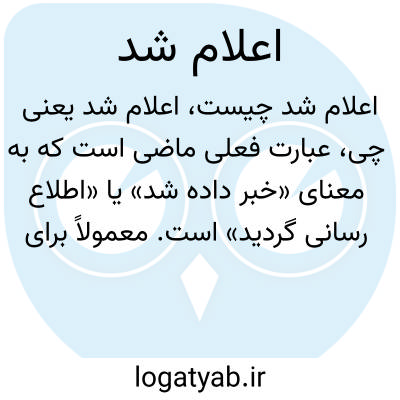 عبارت فعلی ماضی است که به معنای «خبر داده شد» یا «اطلاع رسانی گردید» است. معمولاً برای بیان خبر رسمی یا انتشار اطلاعات از سوی فرد یا نهاد به کار میرود.