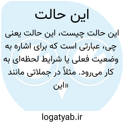 عبارتی است که برای اشاره به وضعیت فعلی یا شرایط لحظه‌ای به کار می‌رود. مثلاً در جملاتی مانند «این حالت نشان‌دهنده اضطراب است»، منظور وضعیت یا شرایطی خاص است که حال حاضر را توصیف می‌کند.