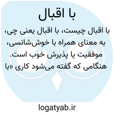 به معنای همراه با خوش‌شانسی، موفقیت یا پذیرش خوب است. هنگامی که گفته می‌شود کاری «با اقبال» روبرو شد، یعنی مورد استقبال یا موفقیت قرار گرفت.