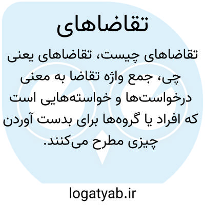 جمع واژه تقاضا به معنی درخواست‌ها و خواسته‌هایی است که افراد یا گروه‌ها برای بدست آوردن چیزی مطرح می‌کنند.