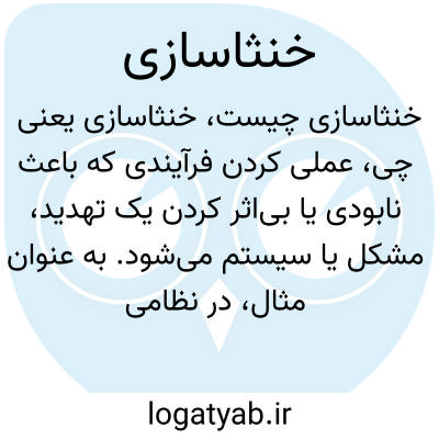 عملی کردن فرآیندی که باعث نابودی یا بیاثر کردن یک تهدید، مشکل یا سیستم میشود. به عنوان مثال، در نظامی یا امنیتی، خنثاسازی بمب یا اقدامات خرابکارانه به معنای انجام اقداماتی است که مانع از آسیب رساندن آن میشود.