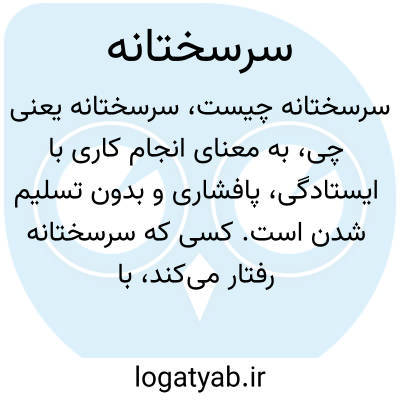 به معنای انجام کاری با ایستادگی، پافشاری و بدون تسلیم شدن است. کسی که سرسختانه رفتار میکند، با مقاومت و عزم قوی به دنبال هدف خود است.