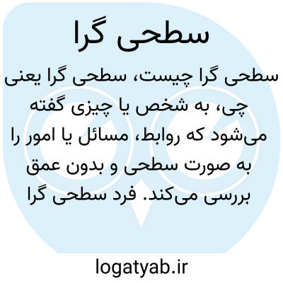 به شخص یا چیزی گفته می‌شود که روابط، مسائل یا امور را به صورت سطحی و بدون عمق بررسی می‌کند. فرد سطحی گرا معمولاً به ظواهر و موارد ابتدایی توجه دارد و درک عمیقی از موضوعات نمی‌یابد. این اصطلاح گاهی بار منفی دارد و به کسی اشاره می‌کند که علاقه‌ای به تفکر عمیق یا پیچیدگی‌ها ندارد.