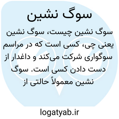 کسی است که در مراسم سوگواری شرکت می‌کند و داغدار از دست دادن کسی است. سوگ نشین معمولاً حالتی از ناراحتی و اندوه عمیق دارد و در مراسم عزاداری در کنار خانواده یا گروهی از بازماندگان حضور می‌یابد. این کلمه برای اشاره به غم و درد فقدان به کار می‌رود.