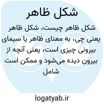 به معنای ظاهر یا سیمای بیرونی چیزی است، یعنی آنچه از بیرون دیده می‌شود و ممکن است شامل ویژگی‌های بصری، ظاهری و فرم کلی باشد. شکل ظاهر می‌تواند مبنای قضاوت اولیه قرار گیرد ولی لزوماً نمایانگر ماهیت درونی نیست.