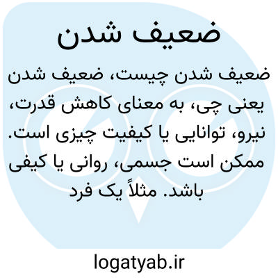 به معنای کاهش قدرت، نیرو، توانایی یا کیفیت چیزی است. ممکن است جسمی، روانی یا کیفی باشد. مثلاً یک فرد ممکن است به دلایلی همچون بیماری یا کهولت سن ضعیف شود، یا یک ساختار فنی از دوام و استحکام آن کاسته شود.