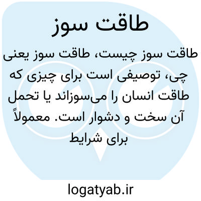 توصیفی است برای چیزی که طاقت انسان را می‌سوزاند یا تحمل آن سخت و دشوار است. معمولاً برای شرایط سخت و طاقت‌فرسا، مثل گرمای زیاد، درد شدید یا مشکلات روانی به کار می‌رود که تحمل آن باعث خستگی و آزردگی شدید می‌شود.