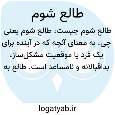 به معنای آنچه که در آینده برای یک فرد یا موقعیت مشکل‌ساز، بداقبالانه و نامساعد است. طالع به معنی سرنوشت یا فال است و شوم یعنی بد، شر و نحس. پس طالع شوم نشاندهنده آینده‌ای همراه با بدشانسی یا خطر می‌باشد.