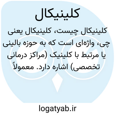 واژه‌ای است که به حوزه بالینی یا مرتبط با کلینیک (مراکز درمانی تخصصی) اشاره دارد. معمولاً در علوم پزشکی به کار می‌رود و به تمام فعالیت‌ها، آزمایش‌ها و درمان‌هایی گفته می‌شود که مستقیماً با بیماران در مراکز درمانی انجام می‌شود. مثلاً «کلینیکال تریال» به آزمون‌های بالینی گفته می‌شود.