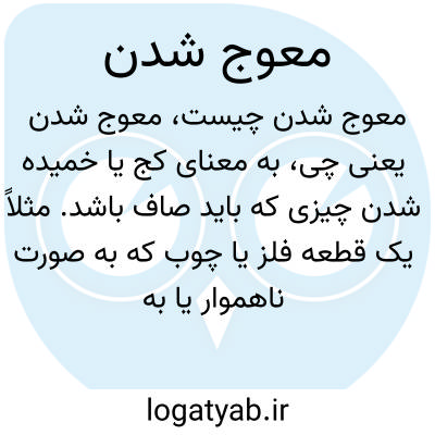 به معنای کج یا خمیده شدن چیزی که باید صاف باشد. مثلاً یک قطعه فلز یا چوب که به صورت ناهموار یا به شکل نامناسب تغییر شکل داده باشد، معوج شده است.