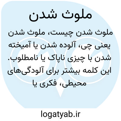 آلوده شدن یا آمیخته شدن با چیزی ناپاک یا نامطلوب. این کلمه بیشتر برای آلودگیهای محیطی، فکری یا اخلاقی به کار میرود، مانند آلودگی هوا یا ملوث شدن یک محل با زباله.
