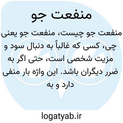کسی که غالباً به دنبال سود و مزیت شخصی است، حتی اگر به ضرر دیگران باشد. این واژه بار منفی دارد و به فردی اشاره می‌کند که تنها به فکر منافع خود است.