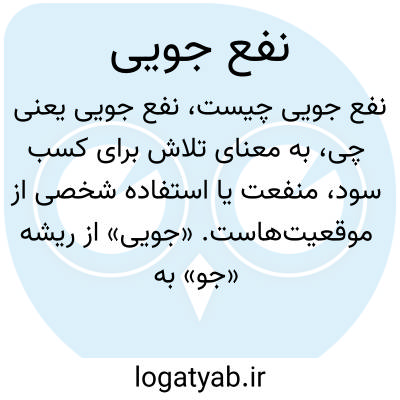به معنای تلاش برای کسب سود، منفعت یا استفاده شخصی از موقعیت‌هاست. «جویی» از ریشه «جو» به معنی طلب کردن است، پس نفع جویی یعنی دنبال کردن منافع.