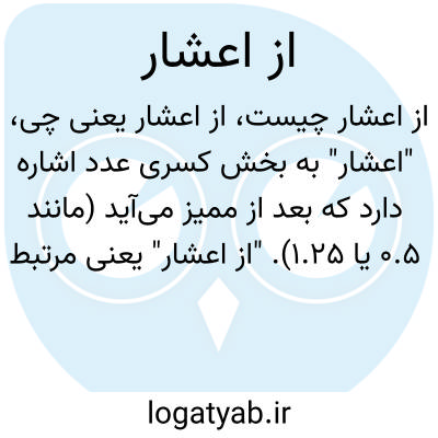 "اعشار" به بخش کسری عدد اشاره دارد که بعد از ممیز میآید (مانند ۰.۵ یا ۱.۲۵). "از اعشار" یعنی مرتبط با بخشهای اعشاری عددها که در ریاضیات برای بیان بخشهای کوچکتر از واحد استفاده میشوند.