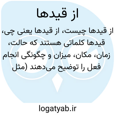 قیدها کلماتی هستند که حالت، زمان، مکان، میزان و چگونگی انجام فعل را توضیح میدهند (مثل سریع، دیروز، اینجا). "از قیدها" اشاره به دستهای از کلمات قیدی دارد.