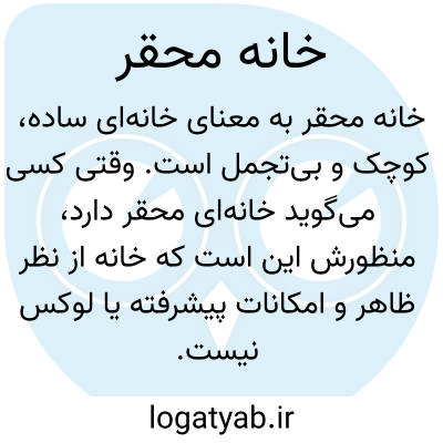 «خانه محقر» به معنای خانهای ساده، کوچک و بیتجمل است. وقتی کسی میگوید خانهای محقر دارد، منظورش این است که خانه از نظر ظاهر و امکانات پیشرفته یا لوکس نیست و بیشتر ویژگیهای پایهای و ضروری را دارد. این اصطلاح معمولاً برای توصیف خانههایی استفاده میشود که ساده و معمولی هستند و بیشتر برای زندگی روزمره مناسباند تا برای نمایش ثروت یا مقام.