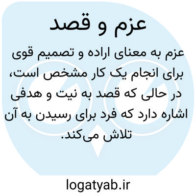 عزم به معنای اراده و تصمیم قوی برای انجام یک کار مشخص است، در حالی که قصد به نیت و هدفی اشاره دارد که فرد برای رسیدن به آن تلاش می‌کند. به عبارت دیگر، عزم بیشتر به پروسه و تلاش مربوط می‌شود، در حالی که قصد به هدف نهایی اشاره دارد. هر دو مفهوم در کنار هم، تعیین‌کننده موفقیت فرد در رسیدن به اهدافش هستند. برای تقویت آن، نخست باید اهداف مشخصی تعیین کنید و آن‌ها را به مراحل کوچکتری تقسیم کنید. سپس، با ایجاد عادات مثبت و منظم، به تحقق این اهداف بپردازید. همچنین، داشتن انگیزه‌های درونی و بیرونی و یادآوری مداوم اهداف به شما کمک می‌کند تا عزم و قصد خود را تقویت کنید و در مسیر موفقیت پایدار بمانید. این واژه از عوامل کلیدی موفقیت در زندگی شخصی و حرفه‌ای به شمار می‌روند. عزم به فرد قدرت پیشرفت و ادامه مسیر در برابر چالش‌ها را می‌دهد، در حالی که قصد به او جهت و هدف مشخص می‌بخشد. ترکیب این دو عامل می‌تواند به فرد کمک کند تا با تمرکز و انگیزه بیشتری به سوی اهداف خود حرکت کند و در نهایت به موفقیت دست یابد. این کلمه قابل آموزش و تقویت هستند. با استفاده از تکنیک‌های مدیریت زمان، خودآموزی و برنامه‌ریزی می‌توان این دو ویژگی را در خود پرورش داد. همچنین، مشاوره و شرکت در دوره‌های آموزشی می‌تواند به افراد کمک کند تا با روش‌های مؤثر برای تقویت عزم و قصد خود آشنا شوند و در نتیجه، توانایی‌های خود را در این زمینه افزایش دهند.