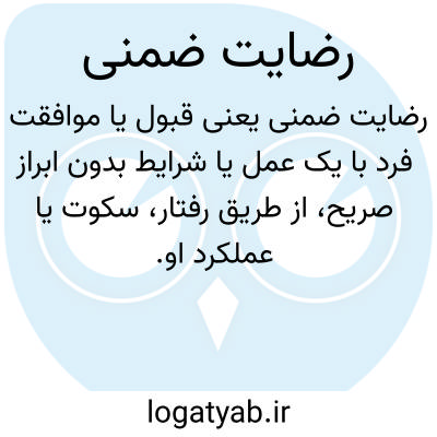 رضایت ضمنی به معنای توافق یا پذیرش یک عمل یا شرایط بدون ابراز مستقیم یا صریح آن است. به عبارت دیگر، فرد به صورت واضح چیزی را نمی‌گوید، اما رفتار، سکوت یا شرایطی که ایجاد می‌کند نشان‌دهنده قبول یا موافقت او با موضوع است. این نوع رضایت معمولاً از طریق رفتارها، عملکردها یا شرایط غیرکلامی قابل تشخیص است و در بسیاری از مسائل قانونی، اجتماعی و پزشکی اهمیت دارد.