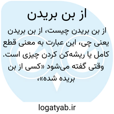این عبارت به معنی قطع کامل یا ریشهکن کردن چیزی است. وقتی گفته میشود «کسی از بن بریده شده»، یعنی رابطه یا پیوند کاملاً قطع شده و راه بازگشتی نیست. همچنین میتواند به معنای توقف کامل یک کار یا فعالیت باشد.