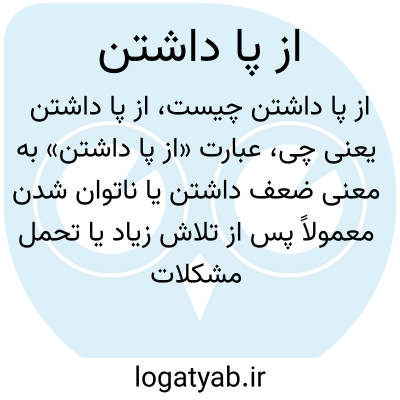 عبارت «از پا داشتن» به معنی ضعف داشتن یا ناتوان شدن معمولاً پس از تلاش زیاد یا تحمل مشکلات است. به این معنی که توان جسمی یا روحی فرد کاهش یافته است.