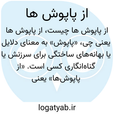 «پاپوش» به معنای دلایل یا بهانههای ساختگی برای سرزنش یا گناهانگاری کسی است. «از پاپوشها» یعنی از آن دلایل واهی یا تهمتهای بیاساس. معمولاً وقتی کسی میگوید «از پاپوشها در امان نیست»، یعنی مورد ظن و اتهامهای بیمورد قرار گرفته است.