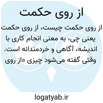 به معنی انجام کاری با اندیشه، آگاهی و خردمندانه است. وقتی گفته می‌شود چیزی «از روی حکمت» انجام شده یعنی آن عمل به دلیل فهم و درک عمیق و با دلیل منطقی بوده است.