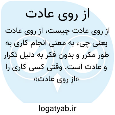 به معنی انجام کاری به طور مکرر و بدون فکر به دلیل تکرار و عادت است. وقتی کسی کاری را «از روی عادت» انجام می‌دهد یعنی بدون تأمل و صرفاً به سبب روال معمول یا تکرار پیشین عمل می‌کند.