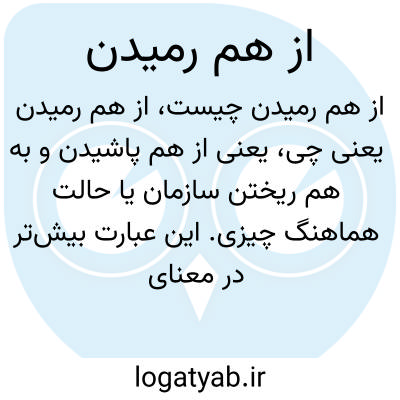 یعنی از هم پاشیدن و به هم ریختن سازمان یا حالت هماهنگ چیزی. این عبارت بیشتر در معنای نابسامانی، آشفتگی یا فروپاشی در روابط یا نظم به کار میرود.