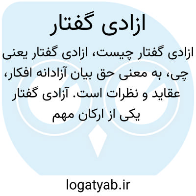 به معنی حق بیان آزادانه افکار، عقاید و نظرات است. آزادی گفتار یکی از ارکان مهم دموکراسی است که به افراد اجازه میدهد بدون ترس از مجازات یا سانسور، دیدگاههای خود را بیان کنند.
