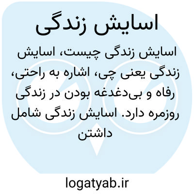 اشاره به راحتی، رفاه و بی‌دغدغه بودن در زندگی روزمره دارد. اسایش زندگی شامل داشتن امکانات، امنیت و رضایت از وضعیت زندگی است.