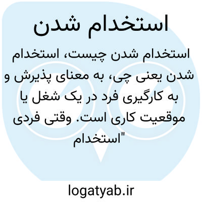 به معنای پذیرش و به کارگیری فرد در یک شغل یا موقعیت کاری است. وقتی فردی "استخدام می‌شود" یعنی توسط سازمان یا شرکتی به عنوان نیروی کاری پذیرفته شده و مشغول به کار می‌شود.