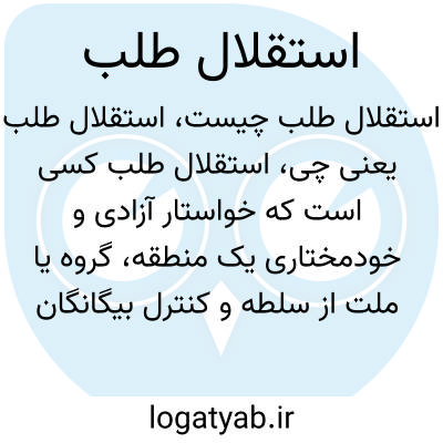 استقلال طلب کسی است که خواستار آزادی و خودمختاری یک منطقه، گروه یا ملت از سلطه و کنترل بیگانگان یا حکومت مرکزی است. این مفهوم غالباً در مباحث سیاسی و اجتماعی به افرادی نسبت داده می‌شود که خواهان استقلال سیاسی یا فرهنگی هستند.