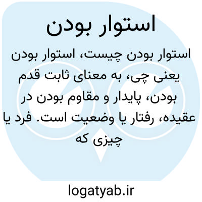 به معنای ثابت قدم بودن، پایدار و مقاوم بودن در عقیده، رفتار یا وضعیت است. فرد یا چیزی که استوار باشد، دچار تزلزل و ناپایداری نمیشود.
