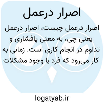 به معنی پافشاری و تداوم در انجام کاری است. زمانی به کار میرود که فرد با وجود مشکلات یا موانع به انجام عملی خاص ادامه میدهد و از آن دست نمیکشد.