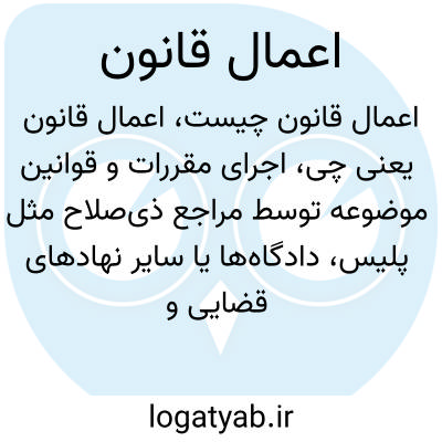 اجرای مقررات و قوانین موضوعه توسط مراجع ذی‌صلاح مثل پلیس، دادگاه‌ها یا سایر نهادهای قضایی و انتظامی جهت حفظ نظم، عدالت و امنیت جامعه.